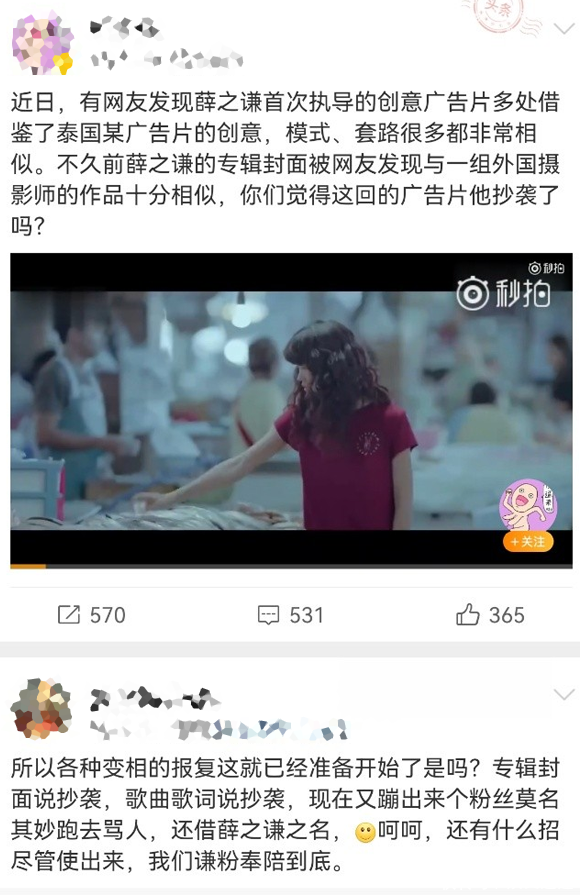 加上淘宝商品被爆与巴黎世家撞款、执导公益广告疑似多处借鉴泰国广告片,薛之谦身上的争议除了与李雨桐的感情纠葛之外,似乎一直都围着分寸感失衡打转。
